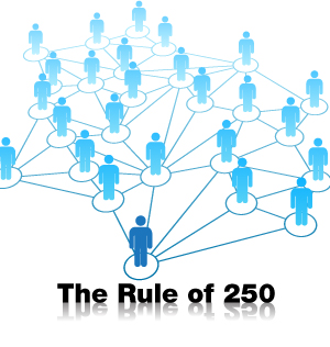 From this informal research, Girard developed his Rule of 250. The basic principle is that most people have about 250 people in their lives that will show up at their funeral or wedding. There are exceptions, of course, but the average seems to be 250.