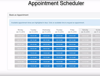 One, the appointment scheduler is available on her phone, tablet, laptop, or desk top, and two, it is available to use 24/7.